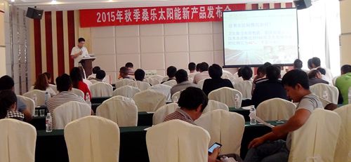 日前,桑樂公司2015年秋季太陽能新品發(fā)布會在貴州省興義市舉行,40余位鄉(xiāng)鎮(zhèn)經(jīng)銷商參加了此次會議。會議的主題是“發(fā)展終端,布局終端,決勝終端?!?br />