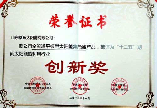 會議期間桑樂公司的“全流道平板集熱器”產(chǎn)品獲得頒發(fā)“中國太陽能熱利用行業(yè)產(chǎn)品創(chuàng)新獎”,會上聘任了新一屆的“中國太陽能熱利用產(chǎn)業(yè)聯(lián)盟專家委員會”,共聘任委員會專家40名,其中聘任專家委員會主任1名,秘書長1名,副主任兼副秘書長1名,副主任委員4名。桑樂光熱技術(shù)部部長馬兵被聘任為中國太陽能熱利用行業(yè)協(xié)會和中國熱利用產(chǎn)業(yè)聯(lián)盟聘任為新一屆專家委員會委員。在副理事長高峰論壇上,桑樂集團總工王斌首先非常感謝同行對桑樂的關(guān)心,并向業(yè)界同仁表示桑樂改制順利完成,新的桑樂重新歸來。