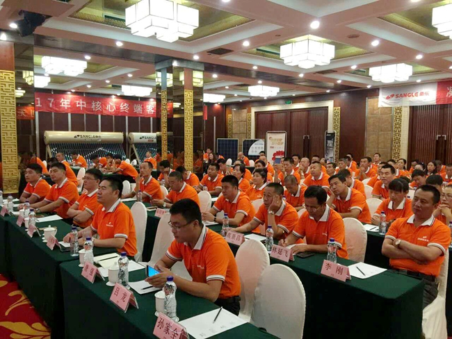 光伏事業(yè)部部長董占河詳細(xì)解讀了公司“樂電站”發(fā)展戰(zhàn)略布局;光熱工程部部長唐強(qiáng)就全流道產(chǎn)品優(yōu)勢及市場空間對經(jīng)銷商做了調(diào)研報告;凈水及廚衛(wèi)推廣部產(chǎn)品經(jīng)理褚鋒就公司新款凈水機(jī)產(chǎn)品和即將推向市場的廚電產(chǎn)品向經(jīng)銷商做了詳細(xì)的分析報告。
