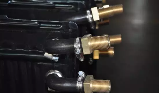 IMSIA一行在現(xiàn)場(chǎng)看到,全流道不銹鋼平板太陽(yáng)能集熱器傳熱介質(zhì)的進(jìn)、出口在均在背部同側(cè)探出,出口與四棱純銅螺紋件用特種橡膠管相連,該項(xiàng)創(chuàng)新杜絕了安裝作業(yè)中扳手卡不住、接口旋不緊或者扭壞焊口的現(xiàn)象發(fā)生。此外,背部接口的設(shè)置更方便整機(jī)陣列整體封裝處理,在大型工程中應(yīng)用優(yōu)勢(shì)凸顯。
