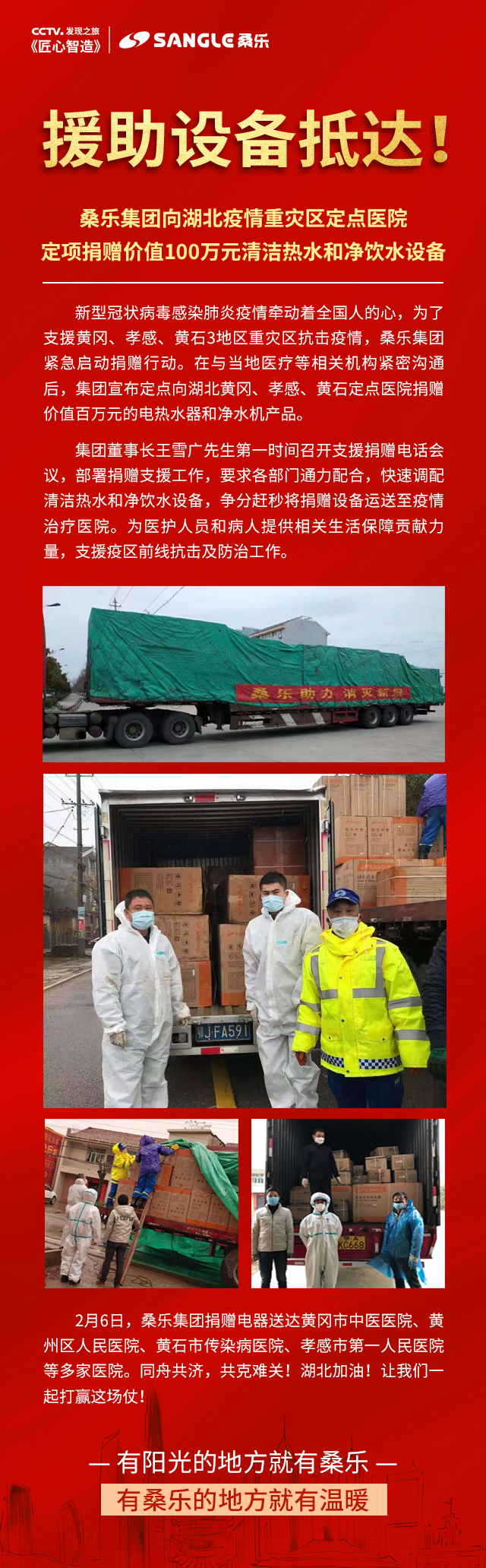 桑樂集團定向捐贈百萬元電熱水器凈水機支援湖北抗擊疫情